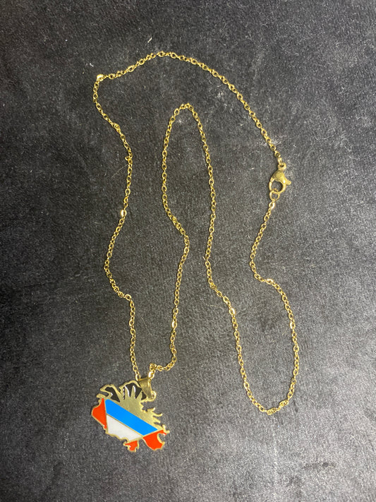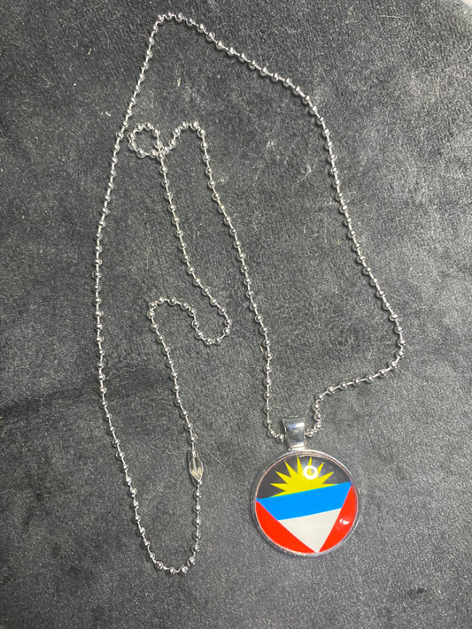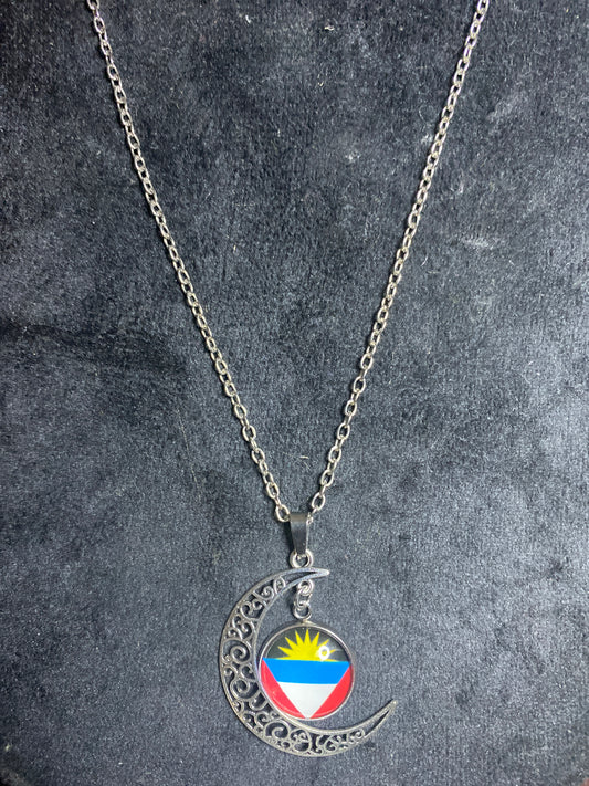 Antigua Flag Necklace w/ Round 3/4” Moon Pendant